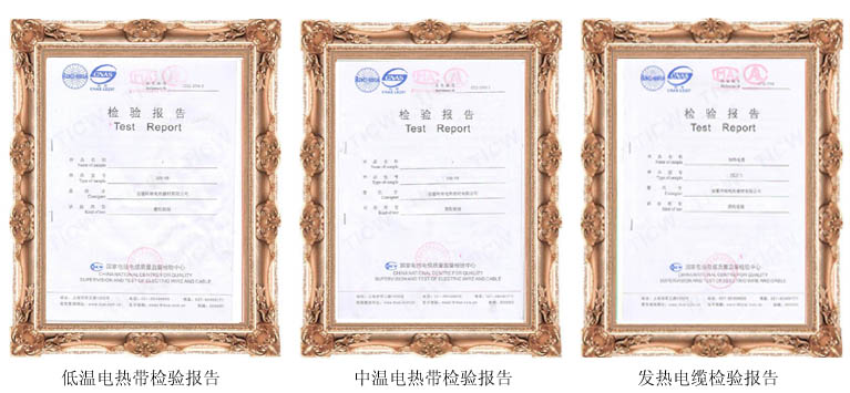 為了保證檢驗(yàn)報(bào)告的權(quán)威性,時(shí)效性,針對(duì)性。我司電熱帶,發(fā)熱電纜產(chǎn)品選擇國(guó)家最權(quán)威的檢測(cè)機(jī)構(gòu)-國(guó)家電線電纜質(zhì)量檢測(cè)中心進(jìn)行送檢。經(jīng)過(guò)三四個(gè)月的檢驗(yàn)周期,目前我司已重新獲得低中溫自控溫電熱帶,發(fā)熱電纜國(guó)家電線電纜檢驗(yàn)報(bào)告。所以產(chǎn)品質(zhì)量均達(dá)到或優(yōu)于檢測(cè)標(biāo)準(zhǔn),這是對(duì)我司近期生產(chǎn)的產(chǎn)品質(zhì)量,包括原材料采購(gòu)一重要評(píng)定。我司將陸續(xù)更新現(xiàn)有公司資質(zhì),做到與時(shí)俱進(jìn)。