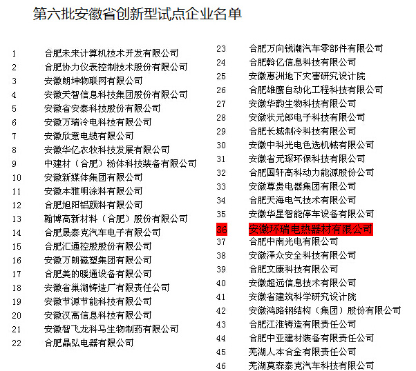 安徽環(huán)瑞榮獲第六批安徽省創(chuàng)新型試點(diǎn)企業(yè)