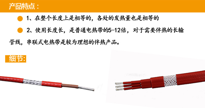 環(huán)瑞生產(chǎn)的串聯(lián)恒功率電伴熱帶適用于長(zhǎng)距離管線的伴熱保溫,在具有一定電阻的芯線上通過(guò)電流,使各處的發(fā)熱量相等,保證伴熱溫度均衡。