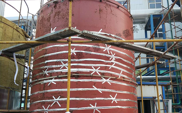 罐體在電伴熱保溫中是非常常見的,像儲(chǔ)油罐、儲(chǔ)氣罐等,那么罐體使用電伴熱帶如何安裝呢,有客戶咨詢加油站零號(hào)柴油罐怎么安裝,其實(shí)是和其它場(chǎng)合罐體安裝方法是一樣的,但是選擇電伴熱帶型號(hào)的時(shí)候需要注意,要選擇防爆防腐型的。安裝的時(shí)候一般是兩種安裝方式,一種是由下至上螺旋式纏繞,保持適當(dāng)?shù)睦p繞間距;另一種是由左向右,上下迂回式安裝,并保持均等的間距。然而儲(chǔ)罐的管壁面積大,比較陡峭,貼敷電伴熱帶不是很容易,所以在安裝的時(shí)候我們要很好的固定住電伴熱帶,將其完全貼敷于罐壁。