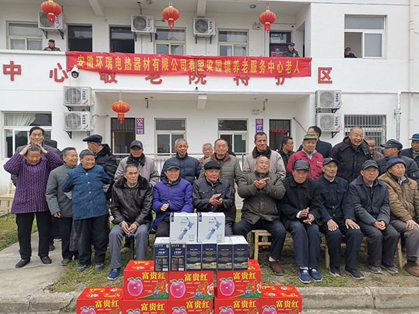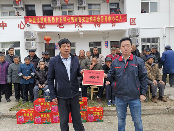 安徽環(huán)瑞電熱器材有限公司董事長(zhǎng)計(jì)成志將“尊老、敬老、愛(ài)老”的精神帶到了梁園鎮(zhèn)敬老院,看望慰問(wèn)生活在敬老院中的老人,并為老人們送上慰問(wèn)品。