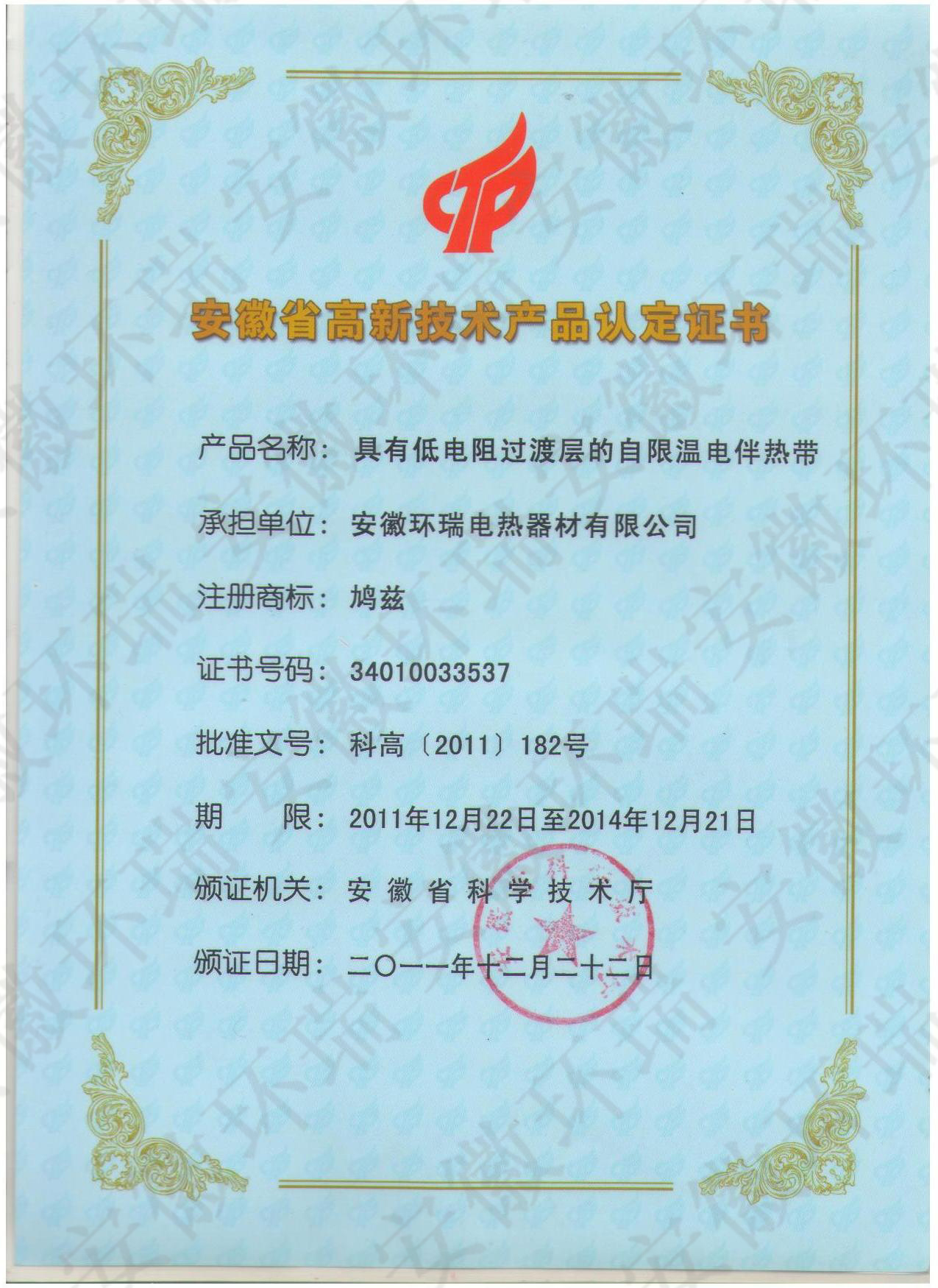 【喜訊】熱烈慶祝安徽環(huán)瑞公司獲省科技廳電熱帶高新技術產(chǎn)品