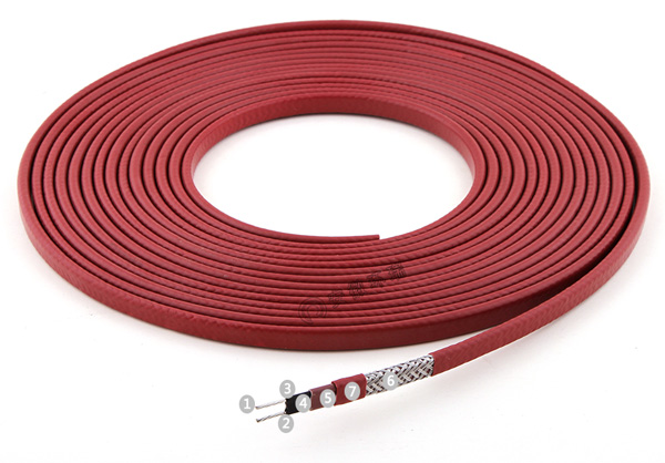 1、銅芯導(dǎo)線 2、低電阻過(guò)渡層 3、PTC芯帶 4、改性聚烯烴絕緣層 5、改性聚烯烴絕緣層 6、金屬屏蔽層 7、低煙無(wú)鹵外護(hù)套(可定制氟塑料護(hù)套)