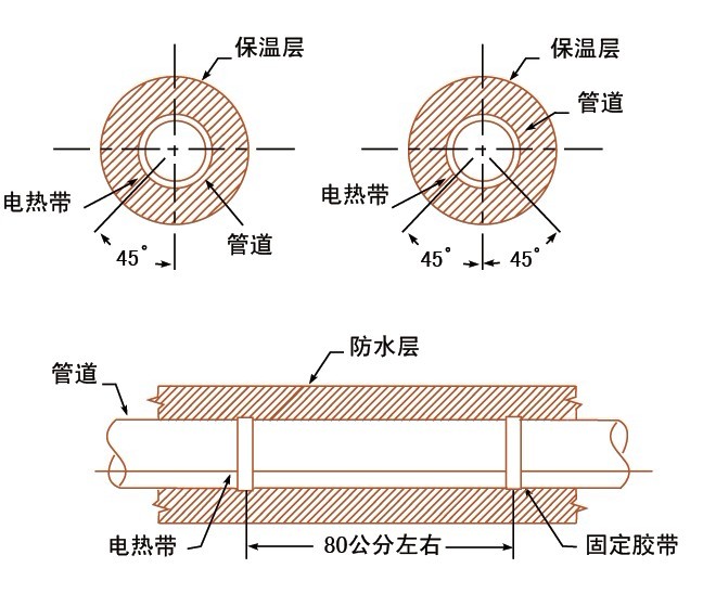 保溫層施工時應(yīng)避免損傷電熱帶。