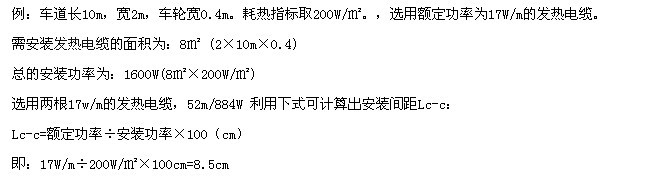 關(guān)于車道融雪化冰,為節(jié)省出資,不用在車道整個區(qū)域鋪設(shè)加熱電纜,通常裝置在車輪通過的當(dāng)?shù)鼐妥銐蛄???蛇x用單位裝置面積功率為200~250W/㎡,并選用帶地上傳感器的溫控器來操控。