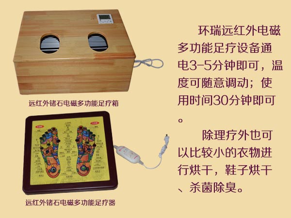 環(huán)瑞遠(yuǎn)紅外鍺石電磁多功能足療器遠(yuǎn)紅外鍺石電磁多功能足療箱突破了以往足療器采用電動(dòng)脈沖等原理,讓人們足底有震動(dòng)感就能理療的假象。環(huán)瑞暖腳設(shè)備通電后產(chǎn)生17um的遠(yuǎn)紅外光波穿過人體真皮組織對足部各個(gè)穴位進(jìn)行效的輻射,促進(jìn)人體的新陳代謝氣血運(yùn)行、調(diào)節(jié)內(nèi)臟功能、舒通全身經(jīng)絡(luò),從而達(dá)到祛病驅(qū)邪、益氣化瘀、滋補(bǔ)元?dú)獾哪康慕?jīng)達(dá)以按摩治療的效果。