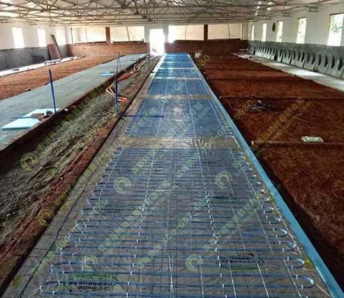 發(fā)熱電纜養(yǎng)殖保溫系統(tǒng)是將220V電源連接埋置在混凝土中的發(fā)熱電纜,發(fā)熱電纜發(fā)熱,將熱量傳至混凝土中并儲熱,然后熱量由混凝土通過熱輻射的形式向上緩慢均勻釋放,從而達(dá)到下暖上涼的采暖效果。