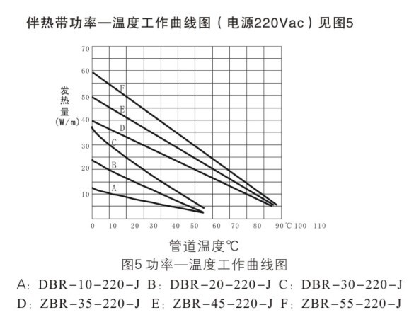 確定和選擇電熱帶的輸出功率,不是以標(biāo)稱功率為依據(jù),而是一系統(tǒng)維持溫度時電熱帶必須輸出的功率為依據(jù)。所選的電熱帶的功率,即使在最惡劣的條件下(如最低氣溫,最大風(fēng)度),應(yīng)仍能補償設(shè)備和管道的熱損失,使維持溫度不致降低。根據(jù)計算的得出的管道每米熱損失值在功率-溫度曲線上查出管道維持溫度時電熱帶的功率,以確定合適的電熱帶規(guī)格。